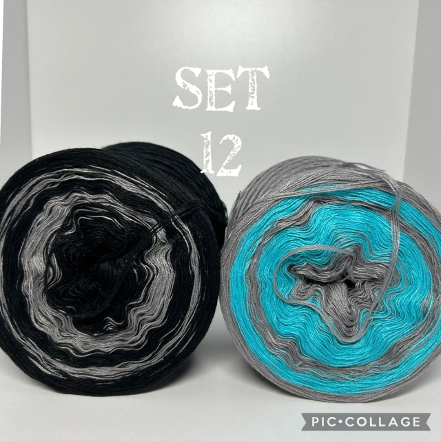StreifentuchSet. Von zwei Bobbeln wird im Wechsel gestrickt und dadurch ergibt sich eine Vielzahl an Mustermöglichkeiten.