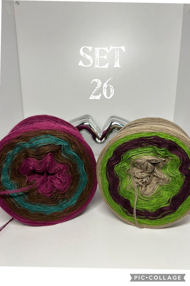 Streifentuchset: Von zwei Bobbeln wird im Wechsel gestrickt und dadurch ergibt sich eine Vielzahl an Mustermöglichkeiten.