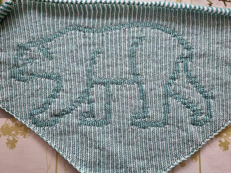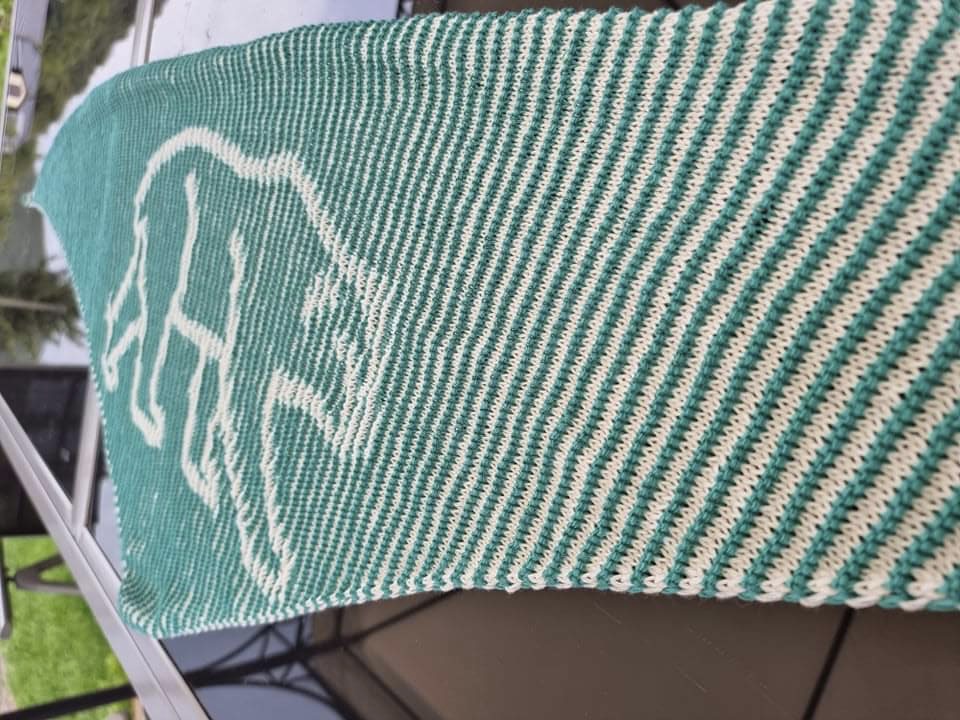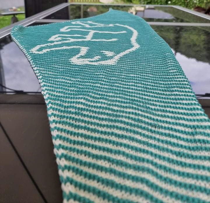 Gestrickt wird mit 2 Farben. Beim Illusionsstricken sieht man von vorne nur ein Streifenmuster und das schöne Motiv wird beim seitlichen Betrachten sichtbar und ändert je nach Blickwinkel die Farbintensität. Gestrickt werden nur rechte und linke Maschen.