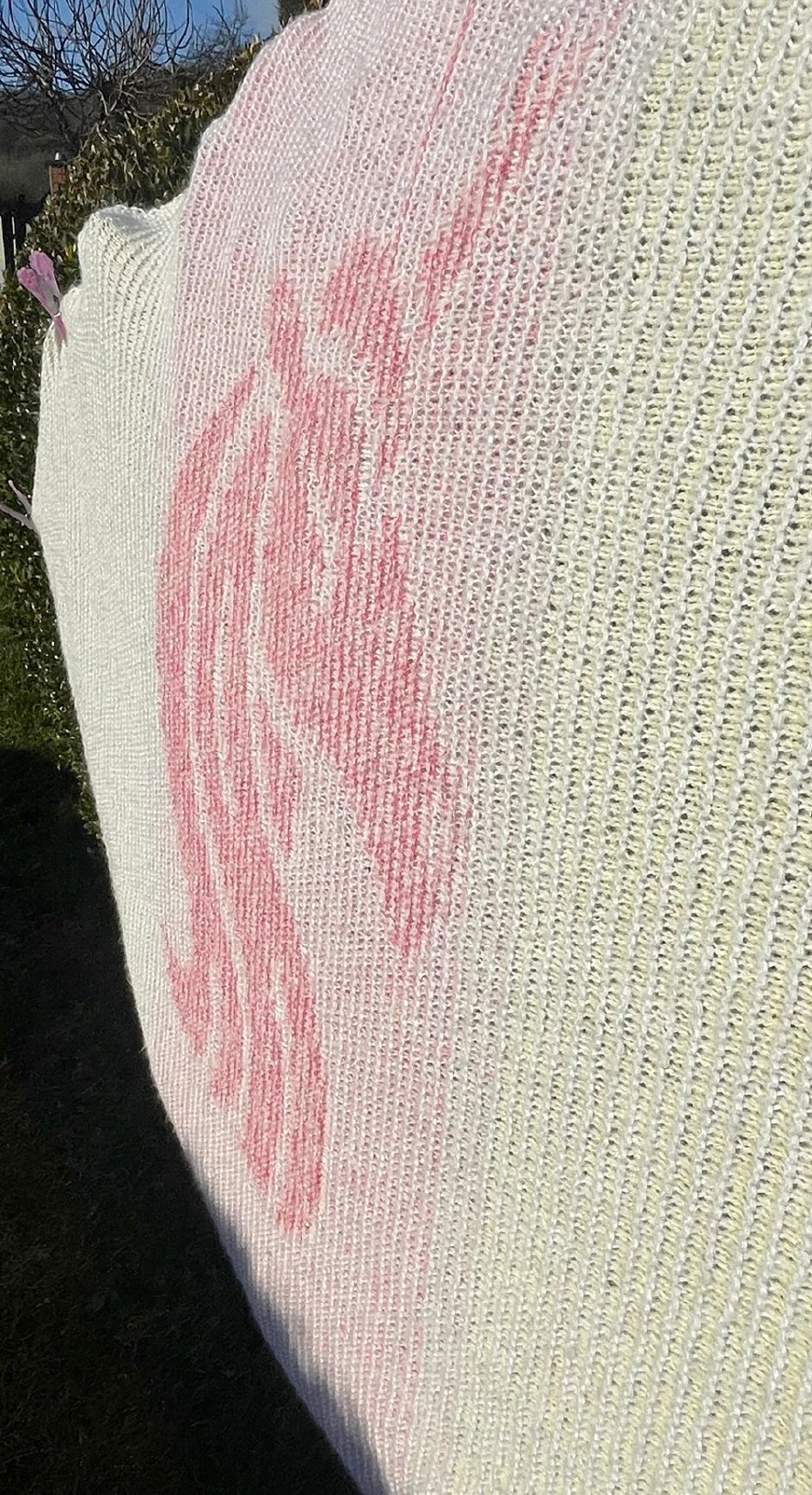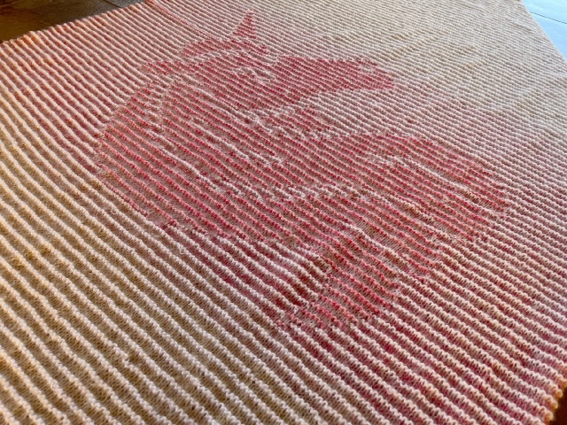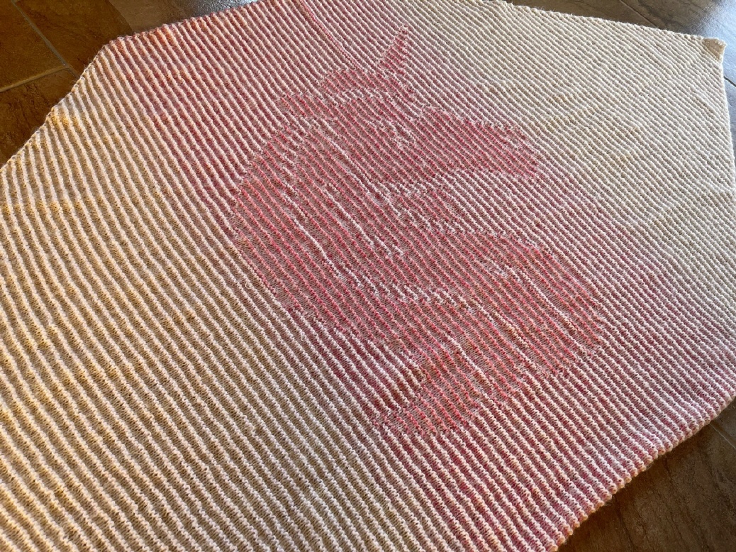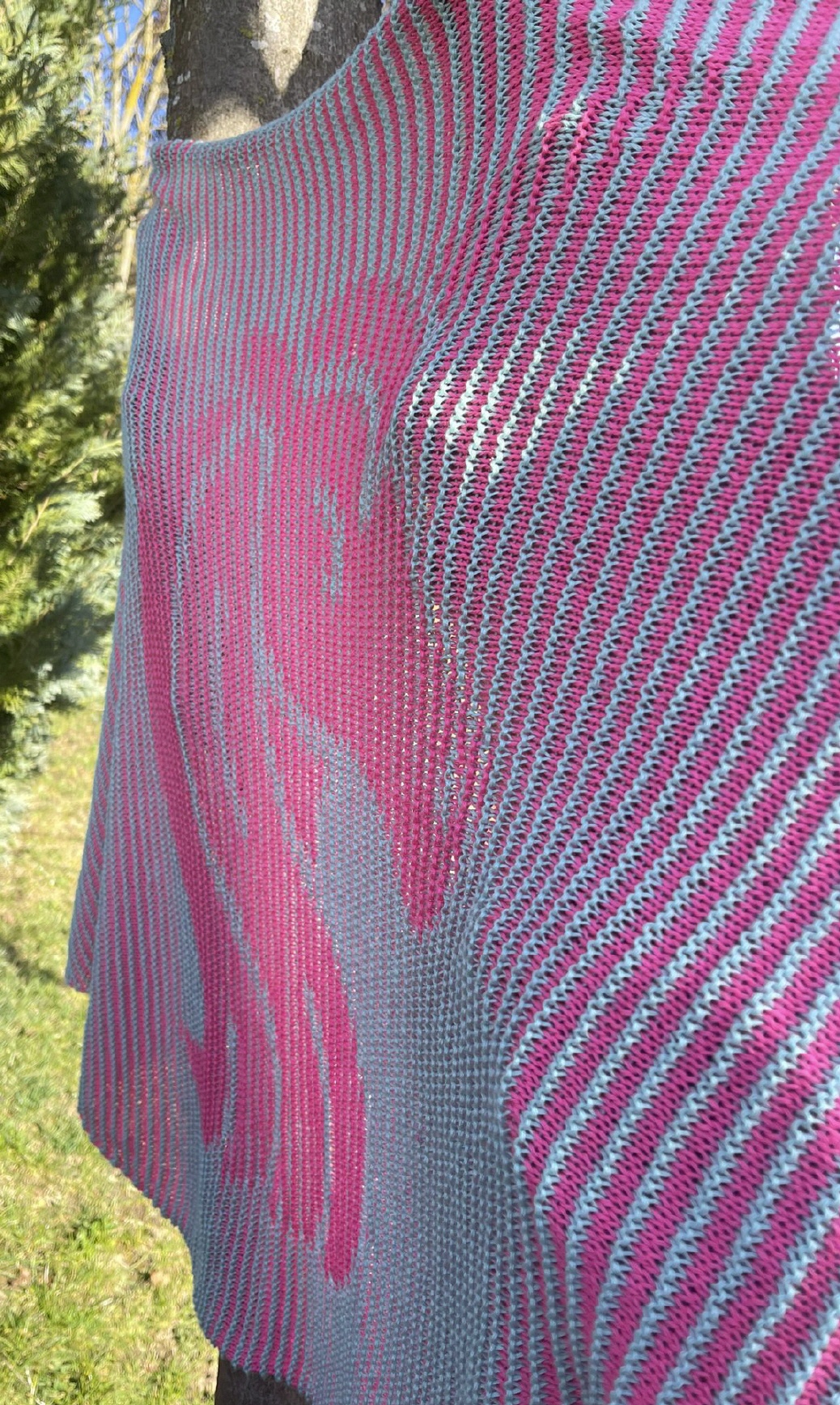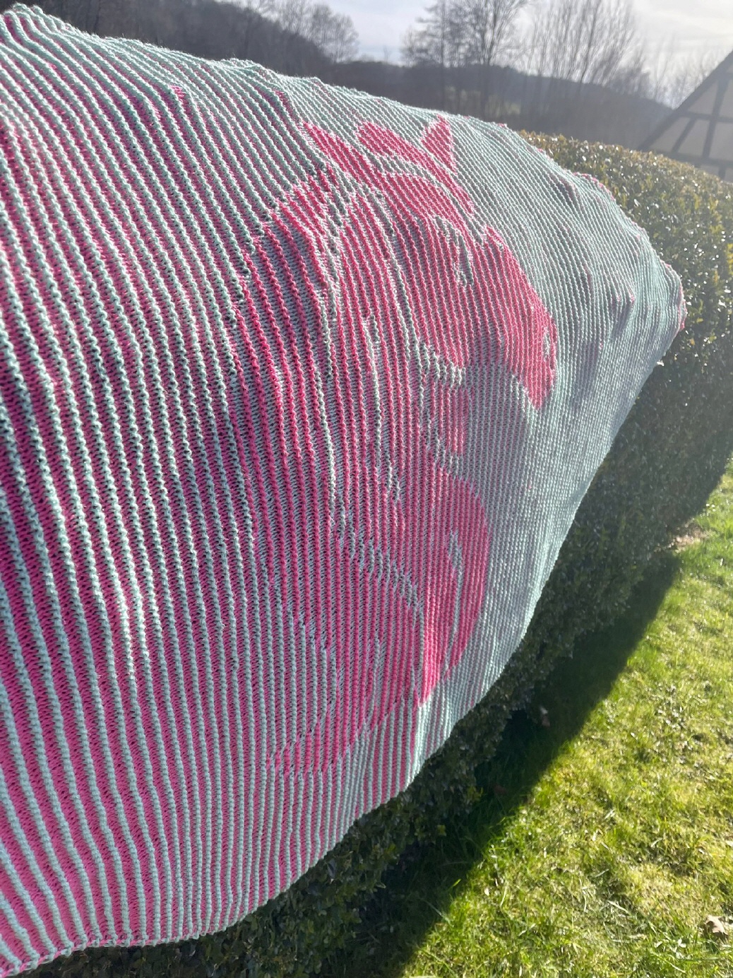 Gestrickt wird mit 2 Farben. Beim Illusionsstricken sieht man von vorne nur ein Streifenmuster und das schöne Motiv wird beim seitlichen Betrachten sichtbar und ändert je nach Blickwinkel die Farbintensität. Gestrickt werden nur rechte und linke Maschen.