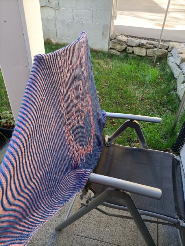 Gestrickt wird mit 2 Farben. Beim Illusionsstricken sieht man von vorne nur ein Streifenmuster und das schöne Motiv wird beim seitlichen Betrachten sichtbar und ändert je nach Blickwinkel die Farbintensität. Gestrickt werden nur rechte und linke Maschen.
