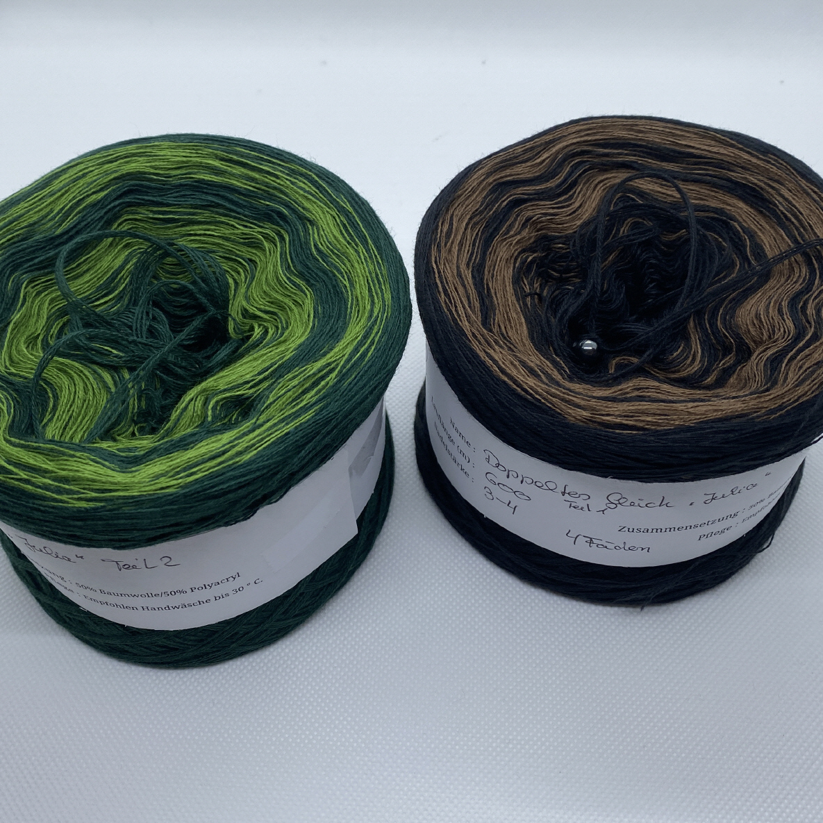Hier ist die Unifarbe im Bobbel länger, als der Verlauf gewickelt