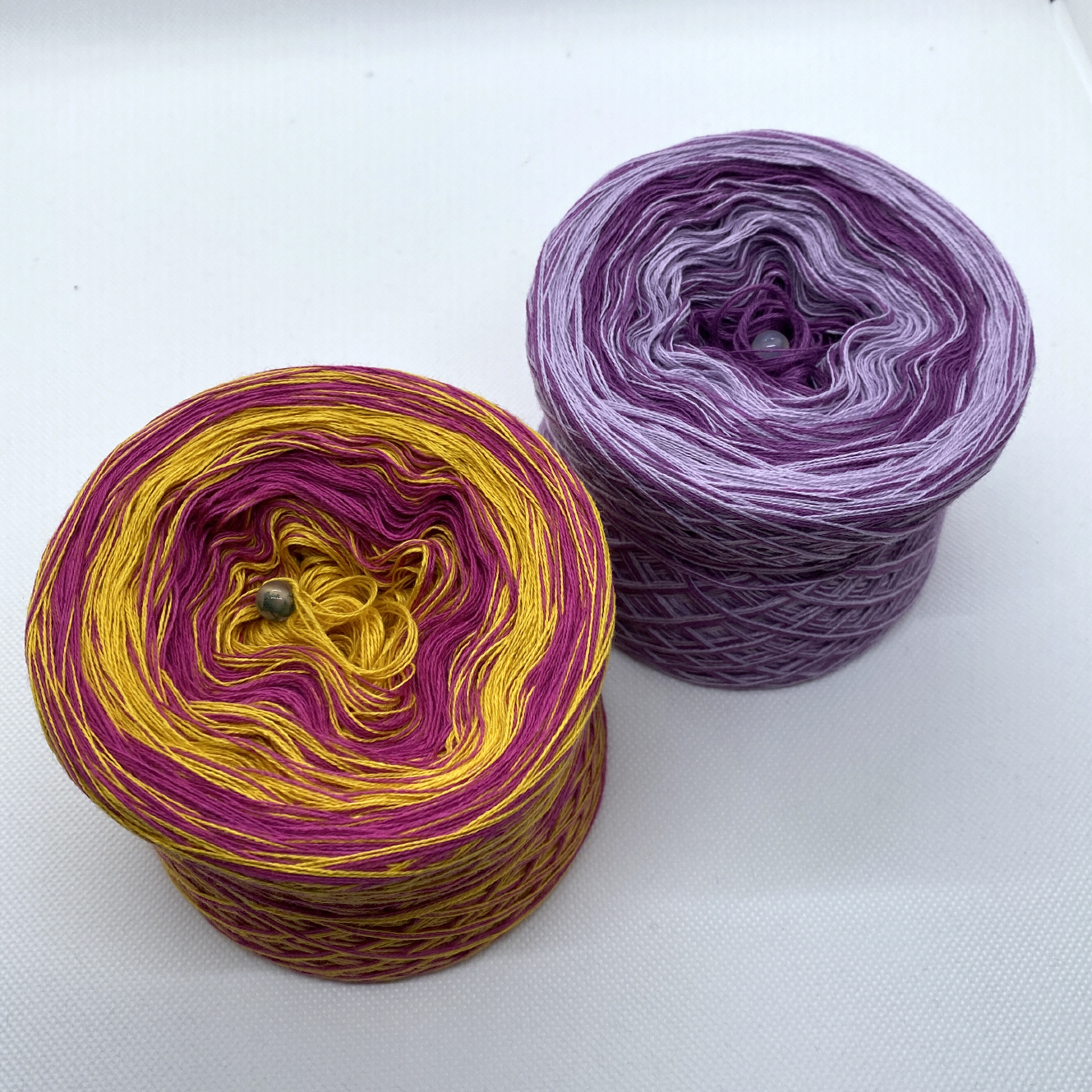 Hier ist die Unifarbe im Bobbel länger, als der Verlauf gewickelt