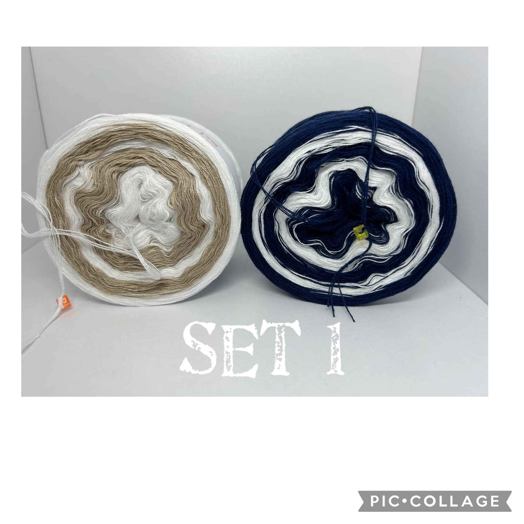 StreifentuchSet. Von zwei Bobbeln wird im Wechsel gestrickt und dadurch ergibt sich eine Vielzahl an Mustermöglichkeiten.