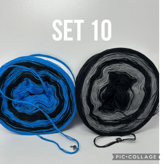 StreifentuchSet. Von zwei Bobbeln wird im Wechsel gestrickt und dadurch ergibt sich eine Vielzahl an Mustermöglichkeiten.