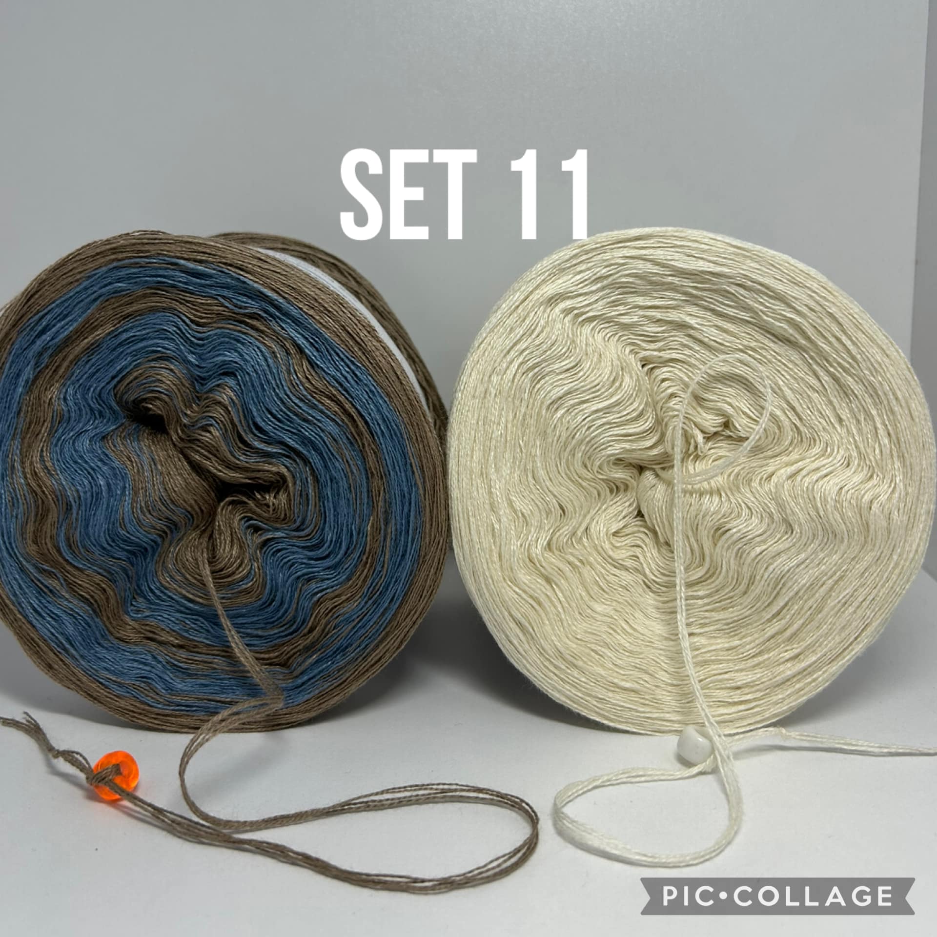 StreifentuchSet. Von zwei Bobbeln wird im Wechsel gestrickt und dadurch ergibt sich eine Vielzahl an Mustermöglichkeiten.