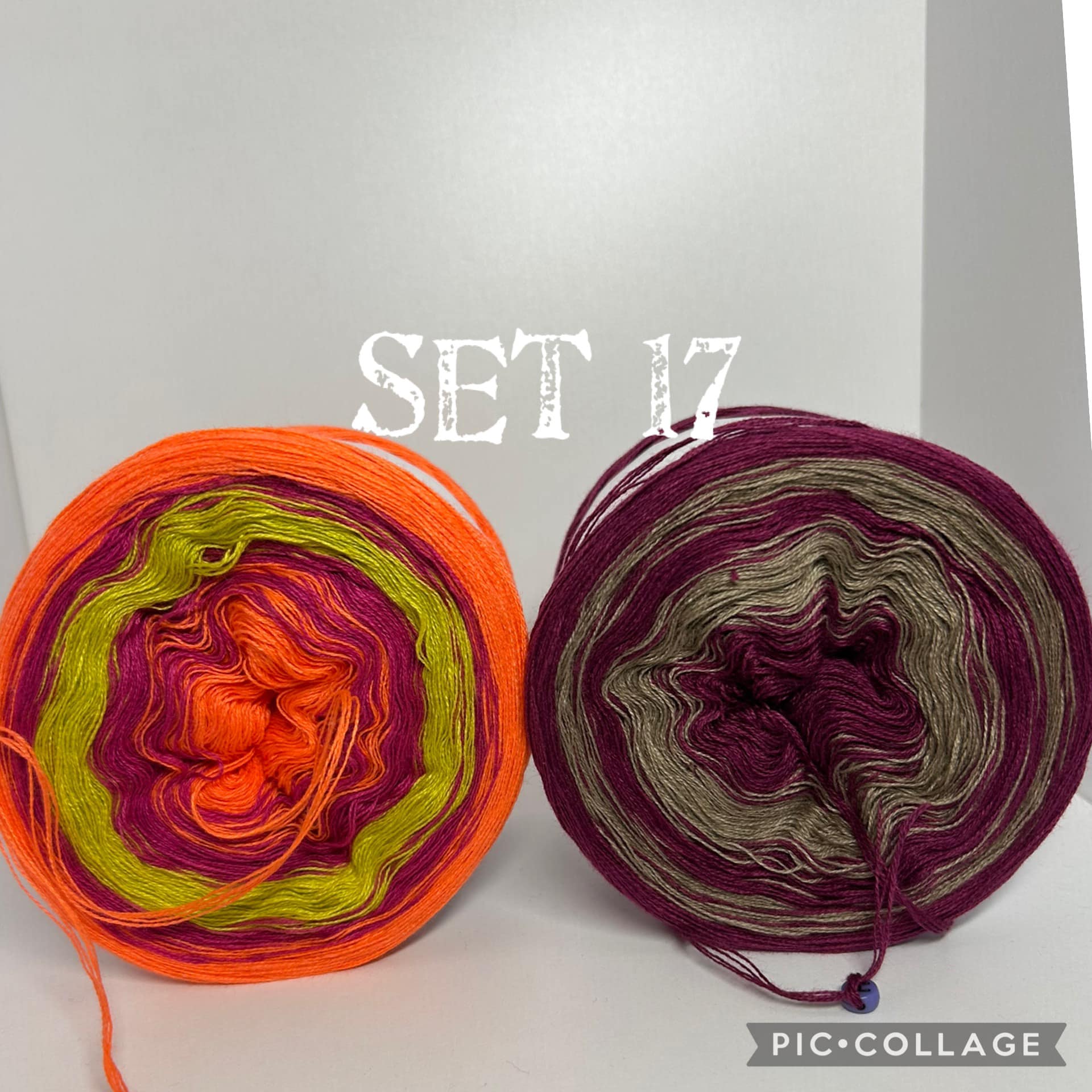 StreifentuchSet. Von zwei Bobbeln wird im Wechsel gestrickt und dadurch ergibt sich eine Vielzahl an Mustermöglichkeiten.
