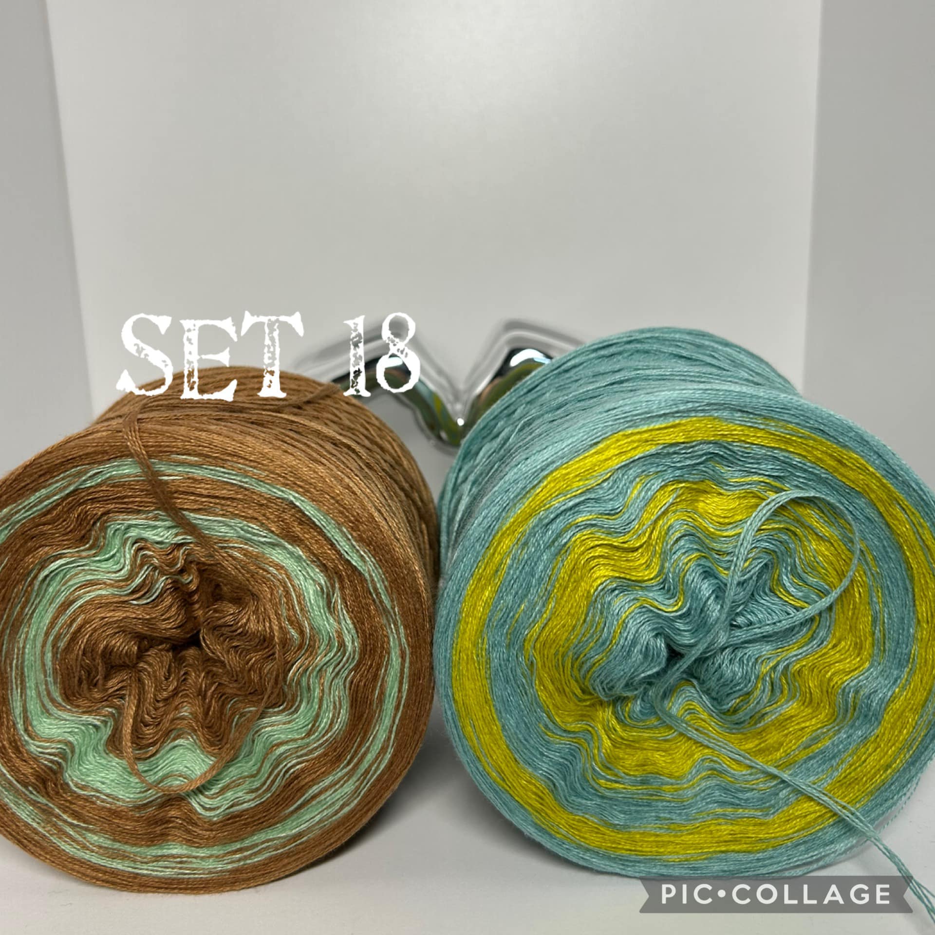 StreifentuchSet. Von zwei Bobbeln wird im Wechsel gestrickt und dadurch ergibt sich eine Vielzahl an Mustermöglichkeiten.