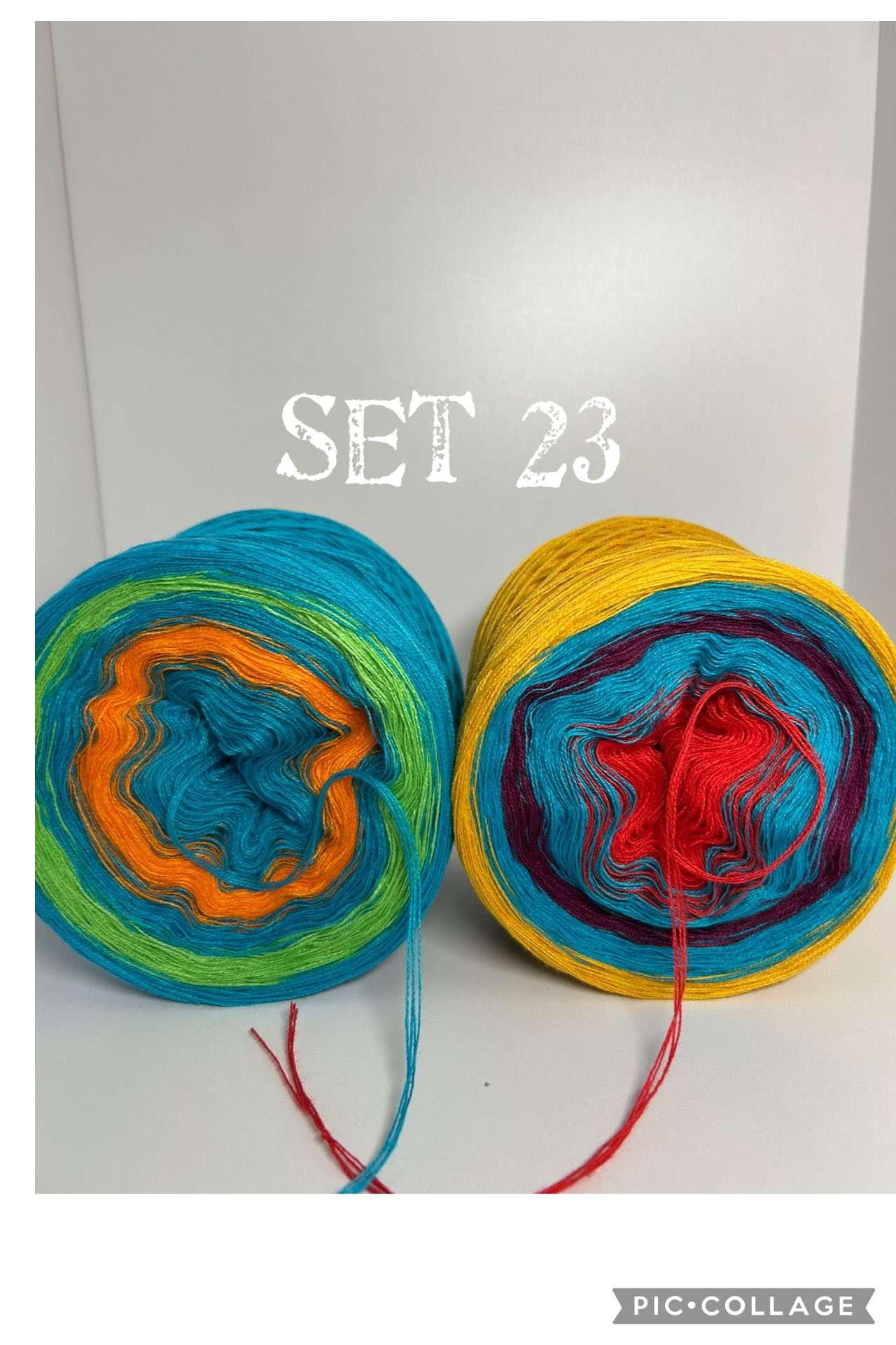Streifentuchset: Von zwei Bobbeln wird im Wechsel gestrickt und dadurch ergibt sich eine Vielzahl an Mustermöglichkeiten.