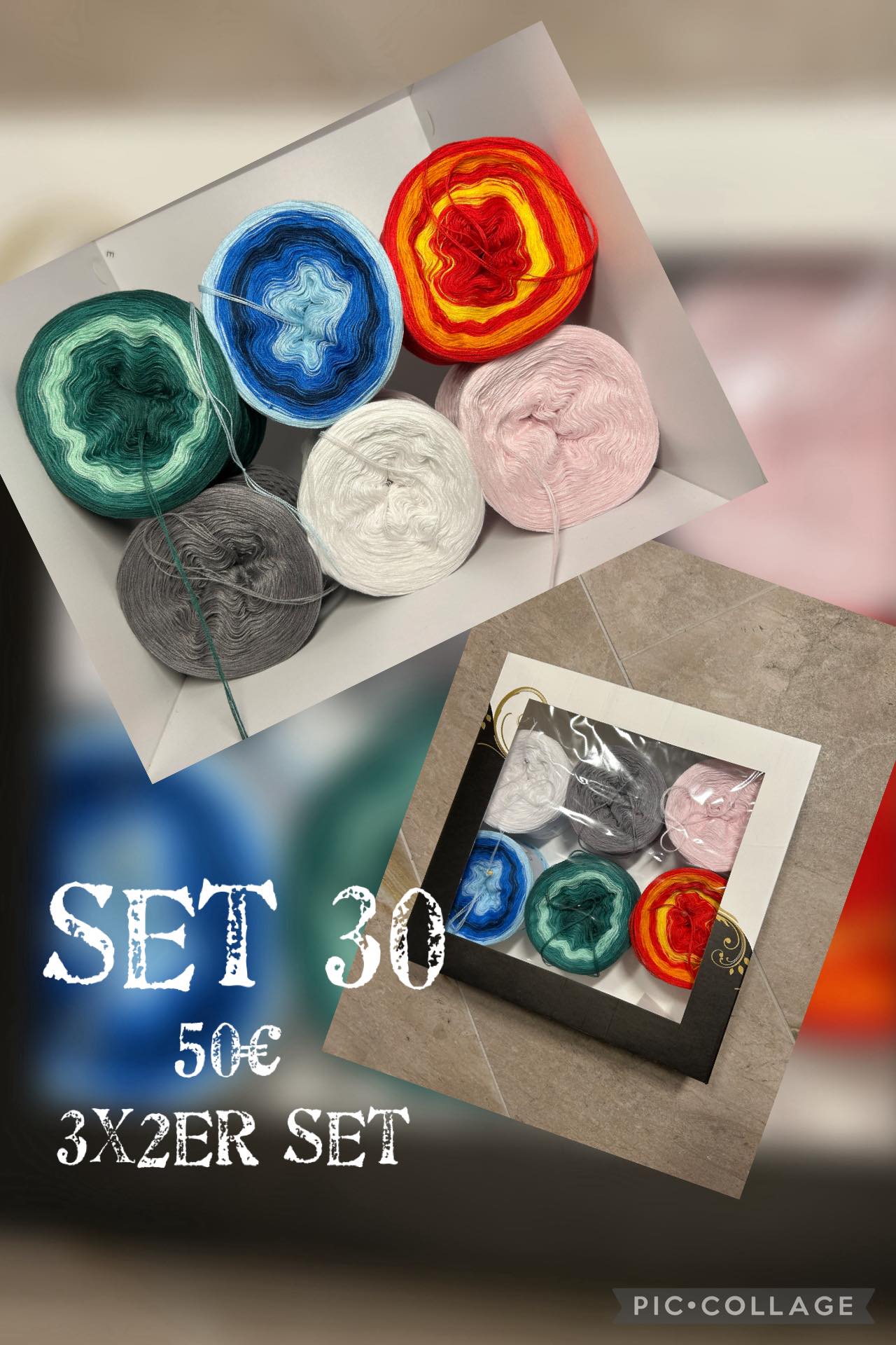 Dieses SET besteht aus 3x je 2x500mll/4fädig. Du kannst dir aussuchen, welche Unifarbe du mit dem Verlaufsbobbel kombinierst.