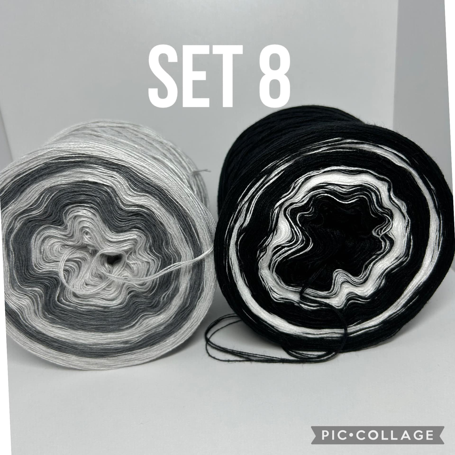 StreifentuchSet. Von zwei Bobbeln wird im Wechsel gestrickt und dadurch ergibt sich eine Vielzahl an Mustermöglichkeiten.